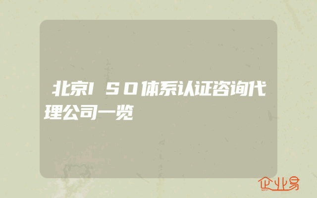 - 北京ISO体系认证咨询代理公司一览一、市场概述随着全球经济一体化的加速和企业竞争加剧,ISO体系认证逐渐成为企业提升管理水平和产品质量的必备条件。北京作为中国的经济中心,拥有众多的ISO体系认证咨询代理公司。这些公司为企业提供专业的