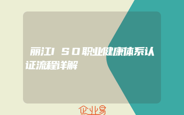 - 丽江ISO职业健康体系认证流程详解一、引言随着丽江地区的经济快速发展,越来越多的企业开始重视职业健康管理体系的建设。ISO职业健康体系认证作为企业提升职业健康管理水平和保障员工健康的重要手段,已经成为众多企业的追求目标。本文将详细介绍丽江I
