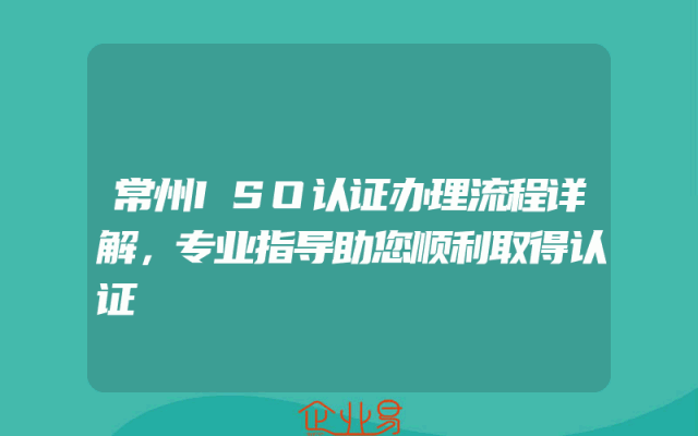 - 常州ISO认证办理流程详解,专业指导助您顺利取得认证