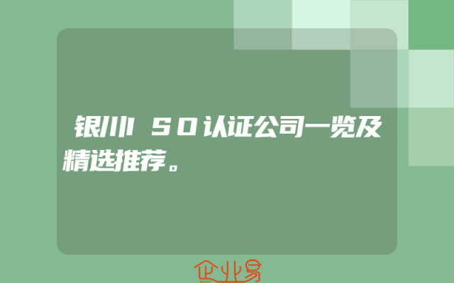 - 银川ISO认证公司一览及精选推荐。