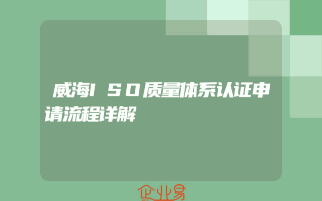 - 威海ISO质量体系认证申请流程详解