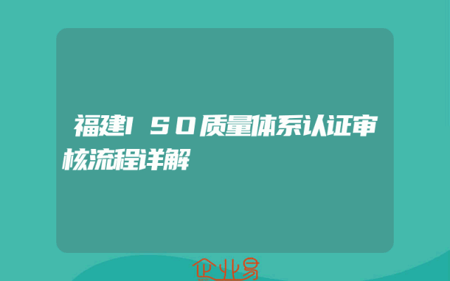 - 福建ISO质量体系认证审核流程详解