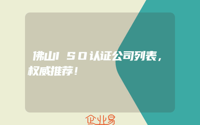 - 佛山ISO认证公司列表,权威推荐!
