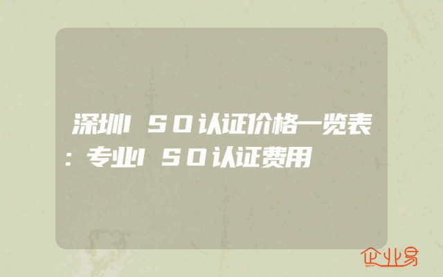 - 深圳ISO认证价格一览表:专业ISO认证费用
