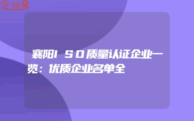 - 襄阳ISO质量认证企业一览:优质企业名单全