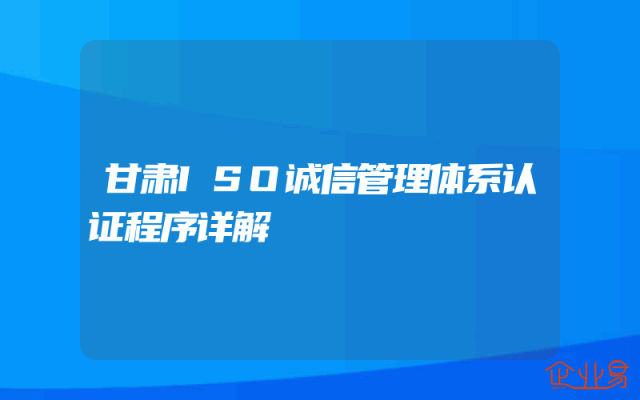 - 甘肃ISO诚信管理体系认证程序详解