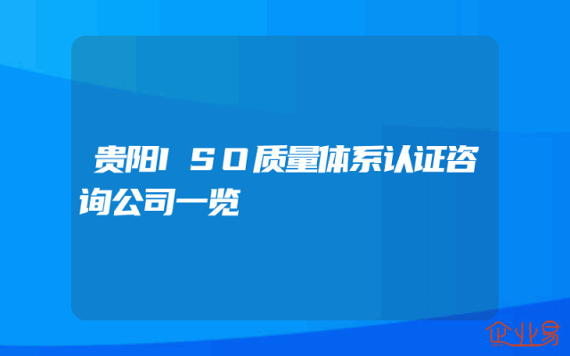 - 贵阳ISO质量体系认证咨询公司一览