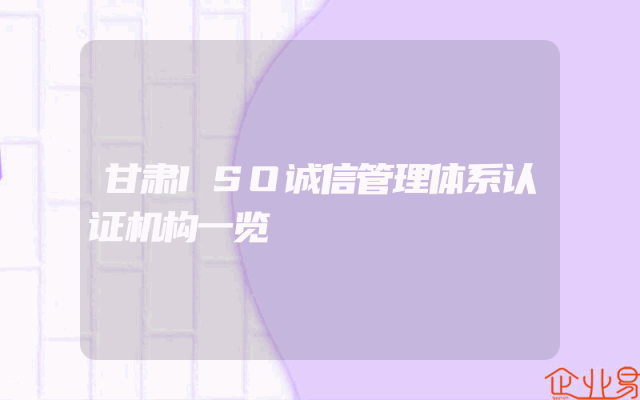 - 甘肃ISO诚信管理体系认证机构一览
