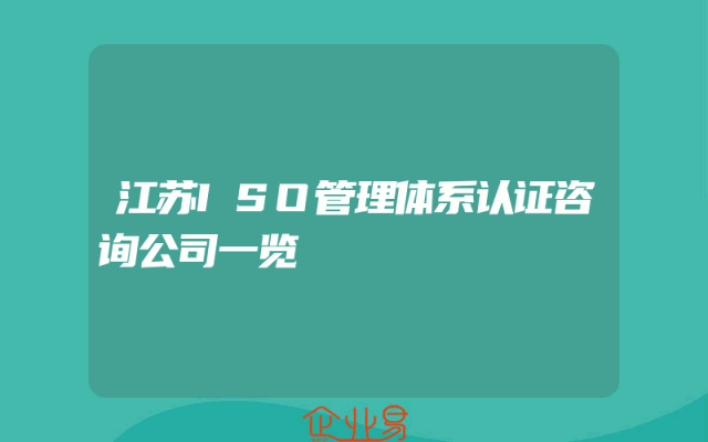 - 江苏ISO管理体系认证咨询公司一览