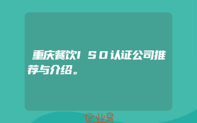 - 重庆餐饮ISO认证公司推荐与介绍。