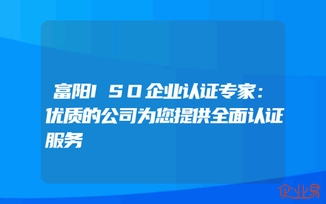 - 富阳ISO企业认证专家:优质的公司为您提供全面认证服务
