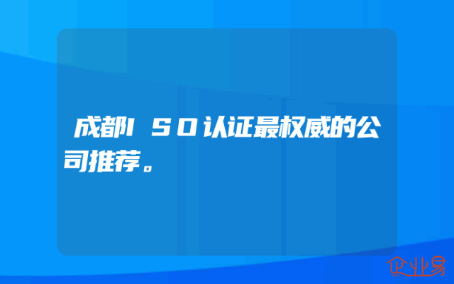 - 成都ISO认证最权威的公司推荐。