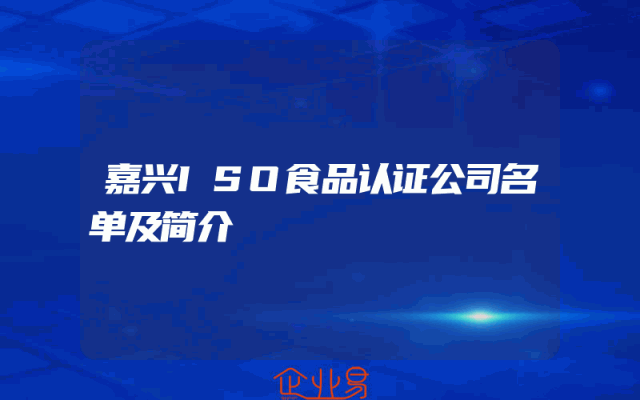 - 嘉兴ISO食品认证公司名单及简介