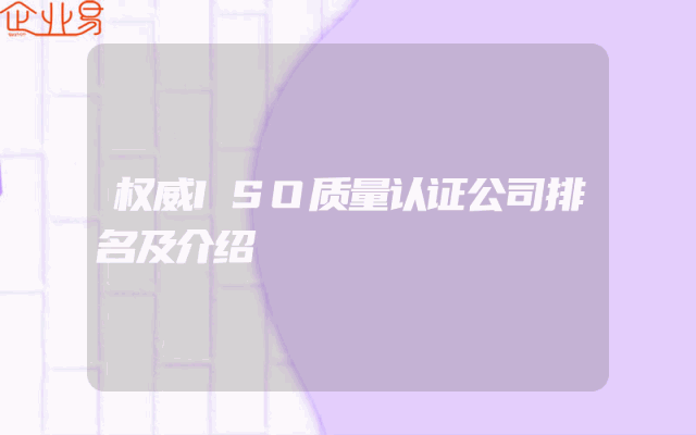 - 权威ISO质量认证公司排名及介绍