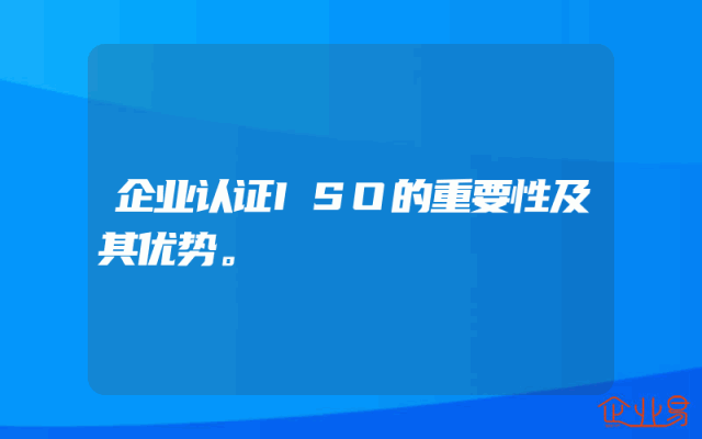 - 企业认证ISO的重要性及其优势。