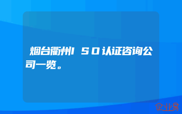 - 烟台衢州ISO认证咨询公司一览。