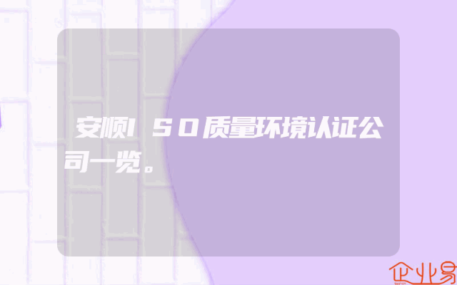 - 安顺ISO质量环境认证公司一览。