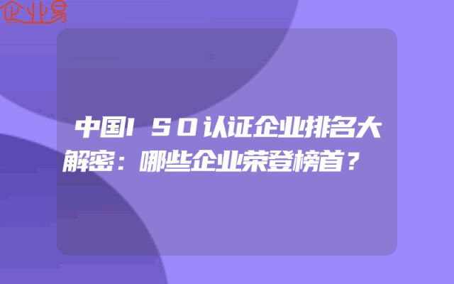 - 中国ISO认证企业排名大解密:哪些企业荣登榜首?