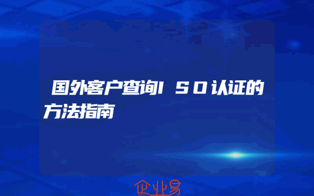 - 国外客户查询ISO认证的方法指南一、了解ISO认证的重要性对于国外客户而言,ISO认证是评估企业运营管理和产品质量的重要标准。在国际市场上,获得ISO认证的企业往往能够赢得客户的信任,提高竞争力。因此,了解如何查询ISO认证信息对于开展国际