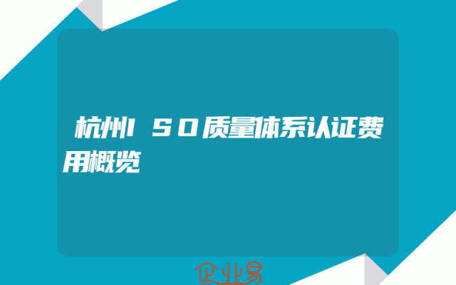 - 杭州ISO质量体系认证费用概览