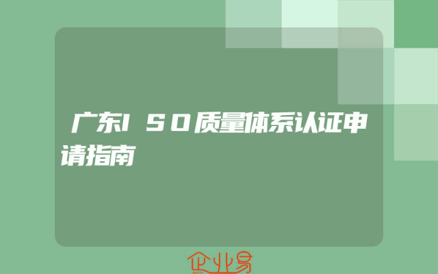 - 广东ISO质量体系认证申请指南