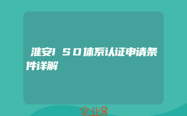 - 淮安ISO体系认证申请条件详解