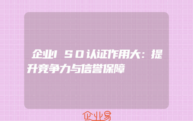 - 企业ISO认证作用大:提升竞争力与信誉保障