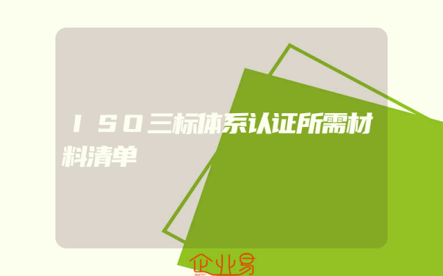 - ISO三标体系认证所需材料清单详解一、企业基础资料企业在申请ISO三标体系认证时,首先需要准备齐全的基础资料,包括但不限于企业的营业执照、税务登记证、组织机构代码证等。这些资料是认证机构评估企业基本资质和合法性的重要依据。二、质量管理体系文