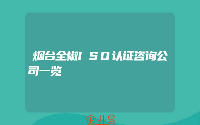 - 烟台全椒ISO认证咨询公司一览一、市场概况与发展趋势烟台作为重要的经济中心之一,全椒ISO认证咨询公司在当地扮演着不可或缺的角色。随着市场竞争的加剧,企业对质量管理体系的要求越来越高,ISO认证已成为企业提升竞争力的关键手段。因此,烟台的全