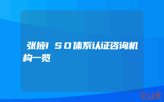 - 张掖ISO体系认证咨询机构一览一、引言随着经济全球化的发展,企业对于管理体系的要求越来越高。ISO体系认证作为企业提升管理水平、增强竞争力的重要手段,受到了广泛关注。张掖地区的企业在寻求ISO体系认证咨询服务的过程中,需要了解当地的咨询机构