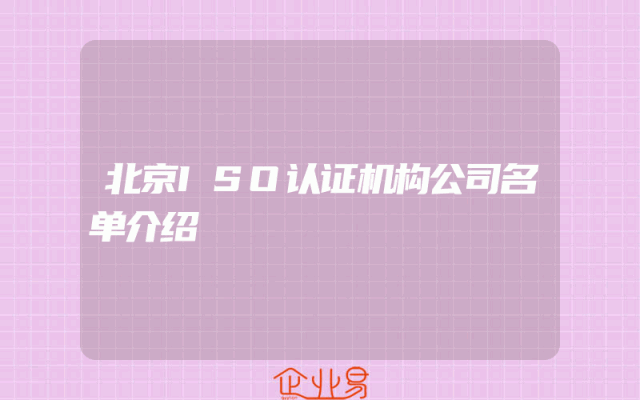 - 北京ISO认证机构公司名单介绍