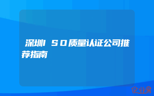 - 深圳ISO质量认证公司推荐指南