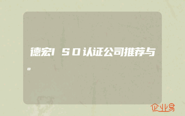 - 德宏ISO认证公司推荐与解析一、德宏ISO认证公司的重要性在当今竞争激烈的市场环境中,企业追求持续改进和质量管理显得尤为重要。作为专业的ISO认证服务机构,德宏ISO认证公司在企业质量管理体系建设中扮演着重要角色。企业通过德宏ISO认证公司