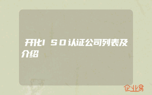 - 开化ISO认证公司列表及介绍