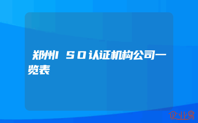 - 郑州ISO认证机构公司一览表