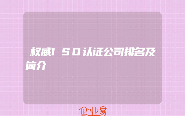 - 权威ISO认证公司排名及简介