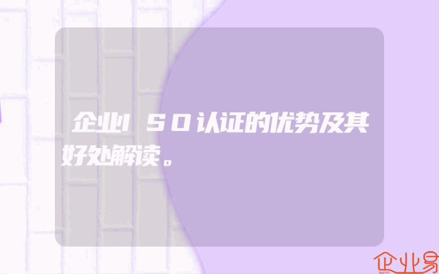 - 企业ISO认证的优势及其好处解读。