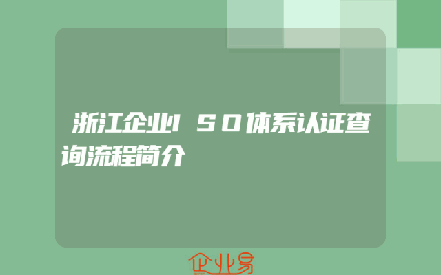 - 浙江企业ISO体系认证查询流程简介
