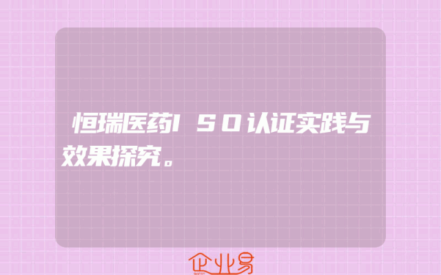 - 恒瑞医药ISO认证实践与效果探究。