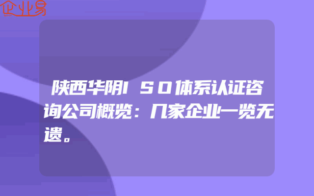 - 陕西华阴ISO体系认证咨询公司概览:几家企业一览无遗。