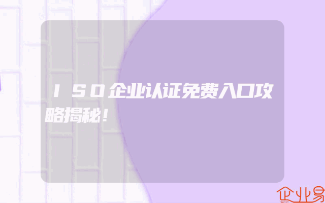 - ISO企业认证免费入口攻略揭秘!一、了解ISO企业认证的重要性在全球化的商业环境中,ISO企业认证已成为企业提升管理水平和保证产品质量的重要标准。通过ISO认证,企业不仅能够提高内部管理的效率和效果,还能增强客户的信任度,拓宽市场渠道。因此