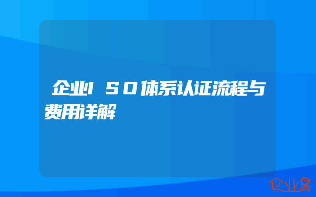 - 企业ISO质量体系认证费用详解:了解办理成本与流程