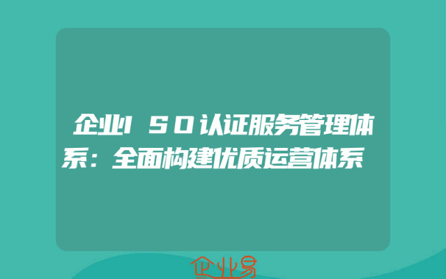 - 企业ISO认证服务管理体系:全面构建优质运营体系