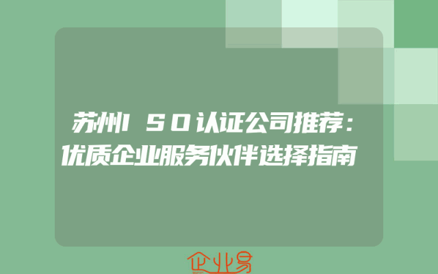 - 苏州ISO认证公司推荐:优质企业服务伙伴选择指南