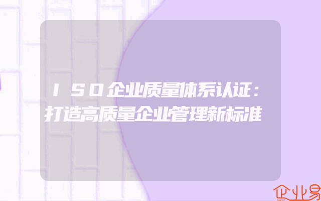 - ISO企业质量体系认证:打造高质量企业管理新标准