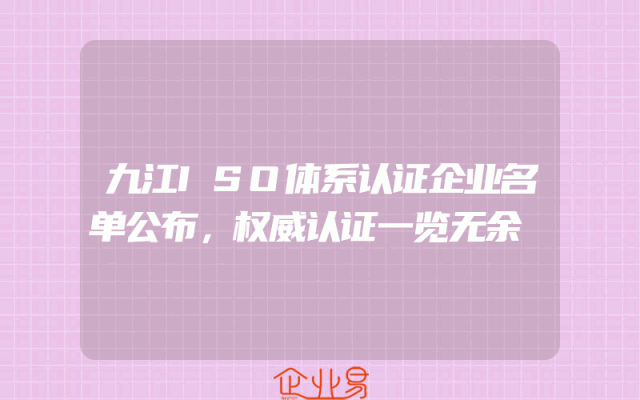 - 九江ISO体系认证企业名单公布,权威认证一览无余