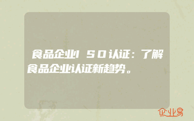- 食品企业ISO认证:了解食品企业认证新趋势。