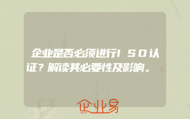 - 企业是否必须进行ISO认证?解读其必要性及影响。