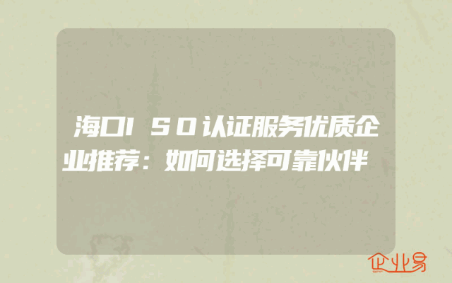 - 海口ISO认证服务优质企业推荐:如何选择可靠伙伴