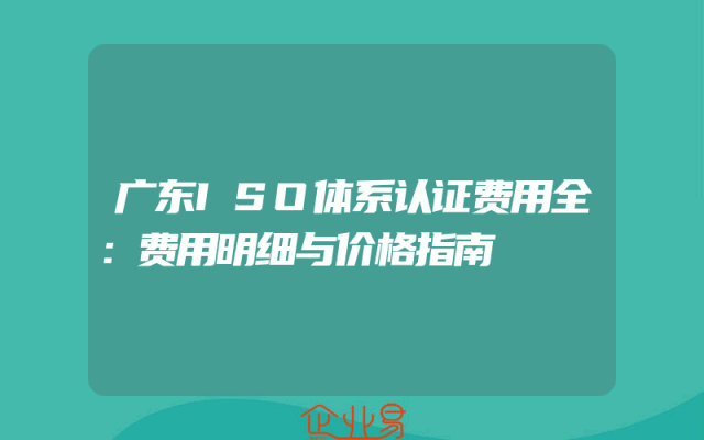 - 广东ISO体系认证费用全:费用明细与价格指南